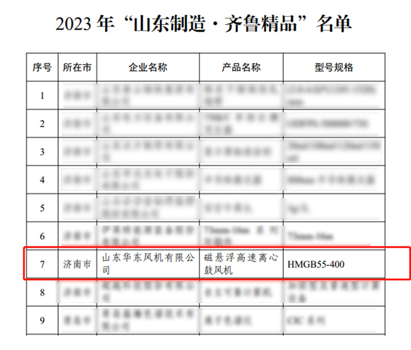 近日,省工業(yè)和信息化廳公布2023年“山東制造·齊魯精品”名單,經(jīng)企業(yè)申報、區(qū)市推薦、專家遂選等程序,我司華東磁懸浮高速離心鼓風機產(chǎn)品成功入選。