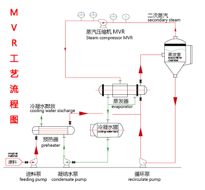 MVR是機(jī)械蒸汽再壓縮技術(shù)(mechanical vapor recompression)的簡稱,MVR是重新利用它自身產(chǎn)生的二次蒸汽的能量,從而減少對外界能源的需求的一項(xiàng)節(jié)能技術(shù)。