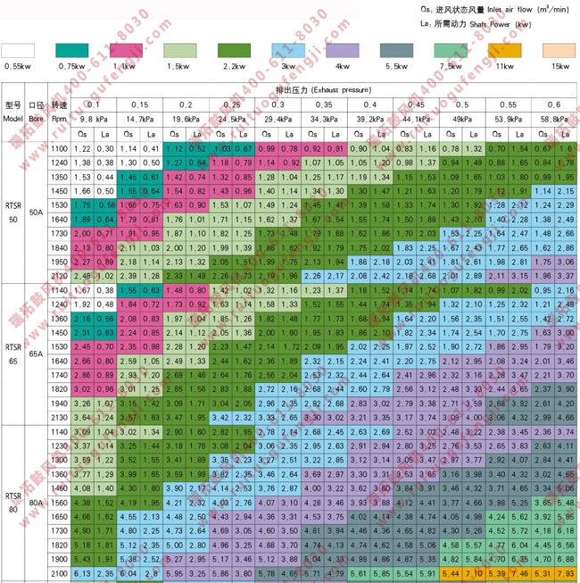今天給大家分享一份羅茨鼓風(fēng)機(jī),三葉型參數(shù)表,通過這個(gè)選型參數(shù)表,可以對照自己的參數(shù)進(jìn)行羅茨風(fēng)機(jī)的選型,如下: